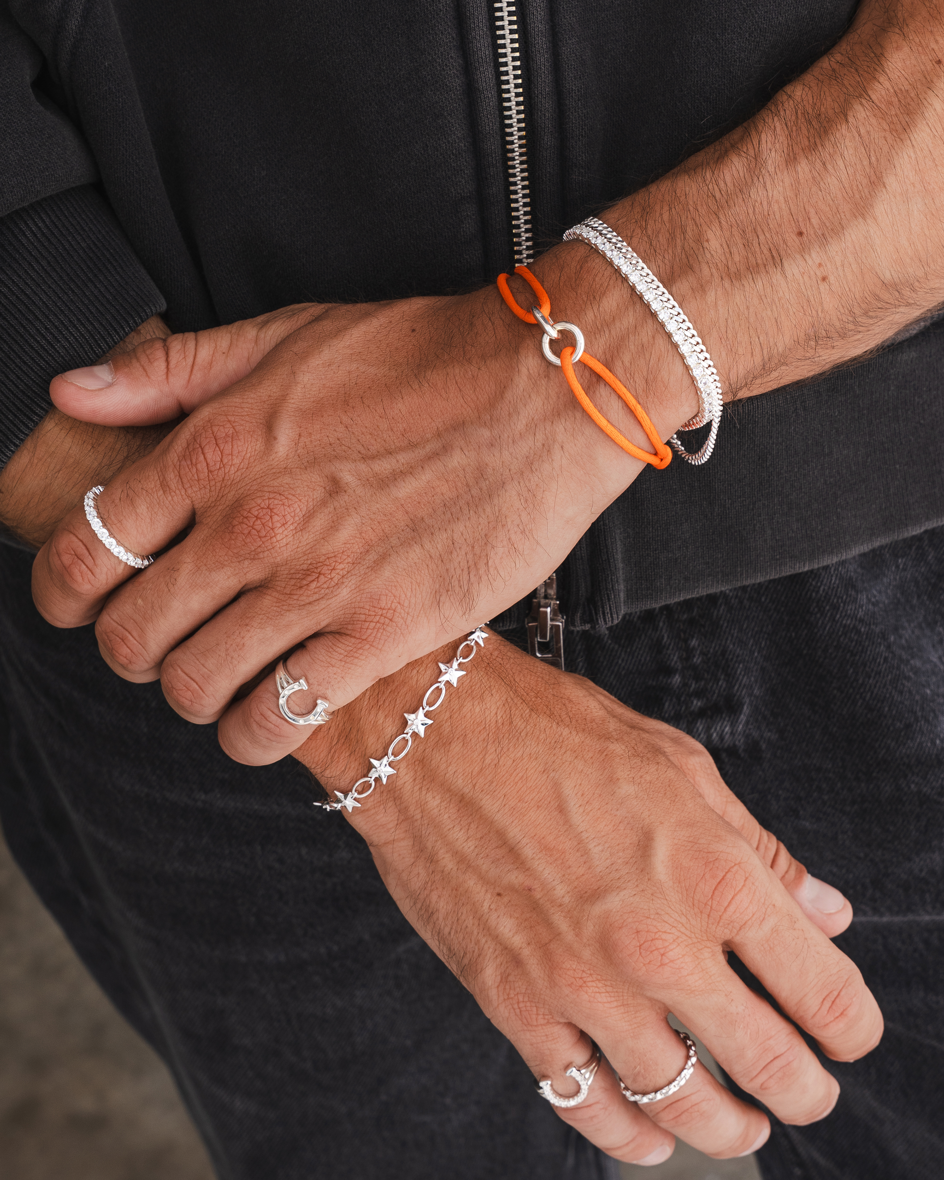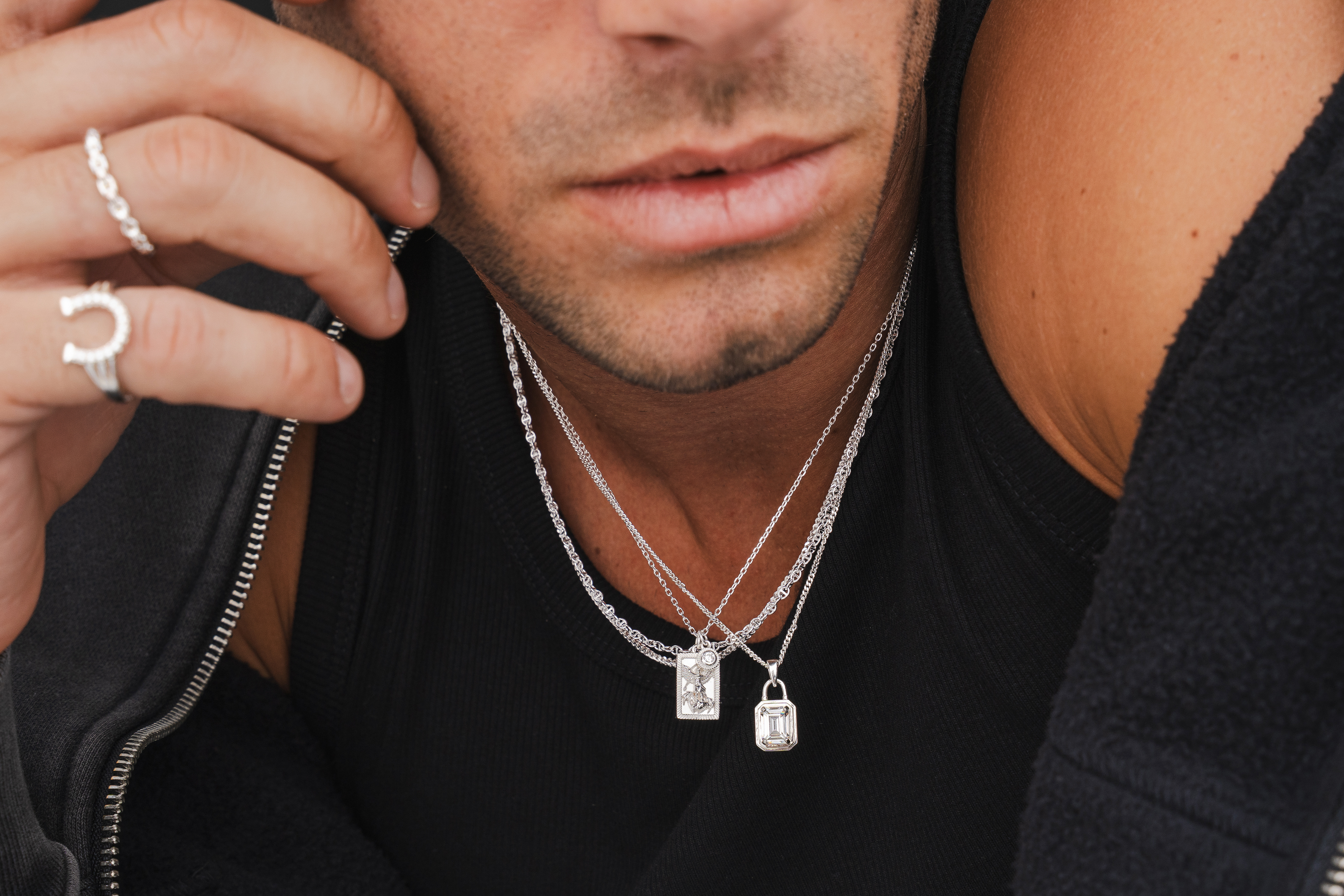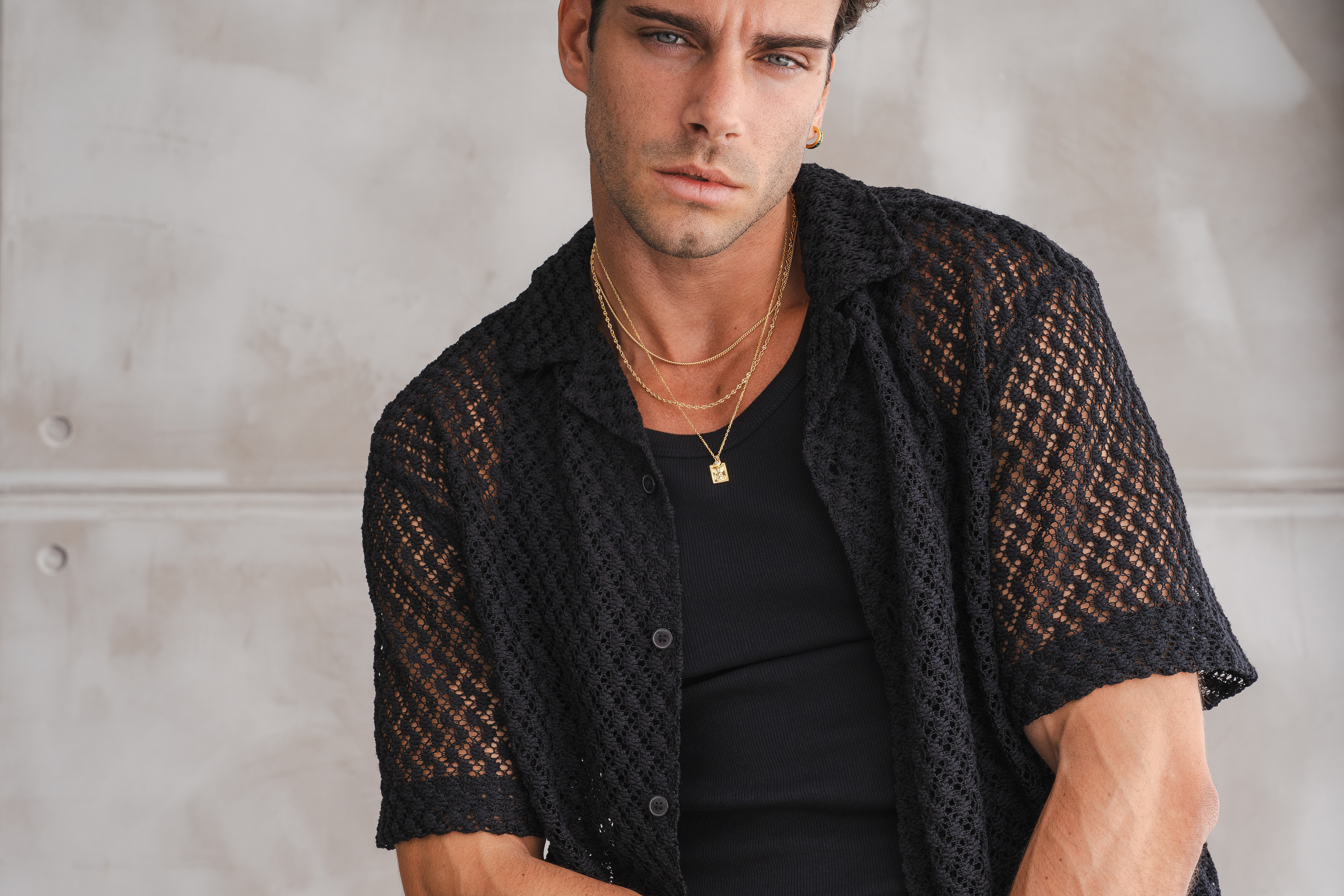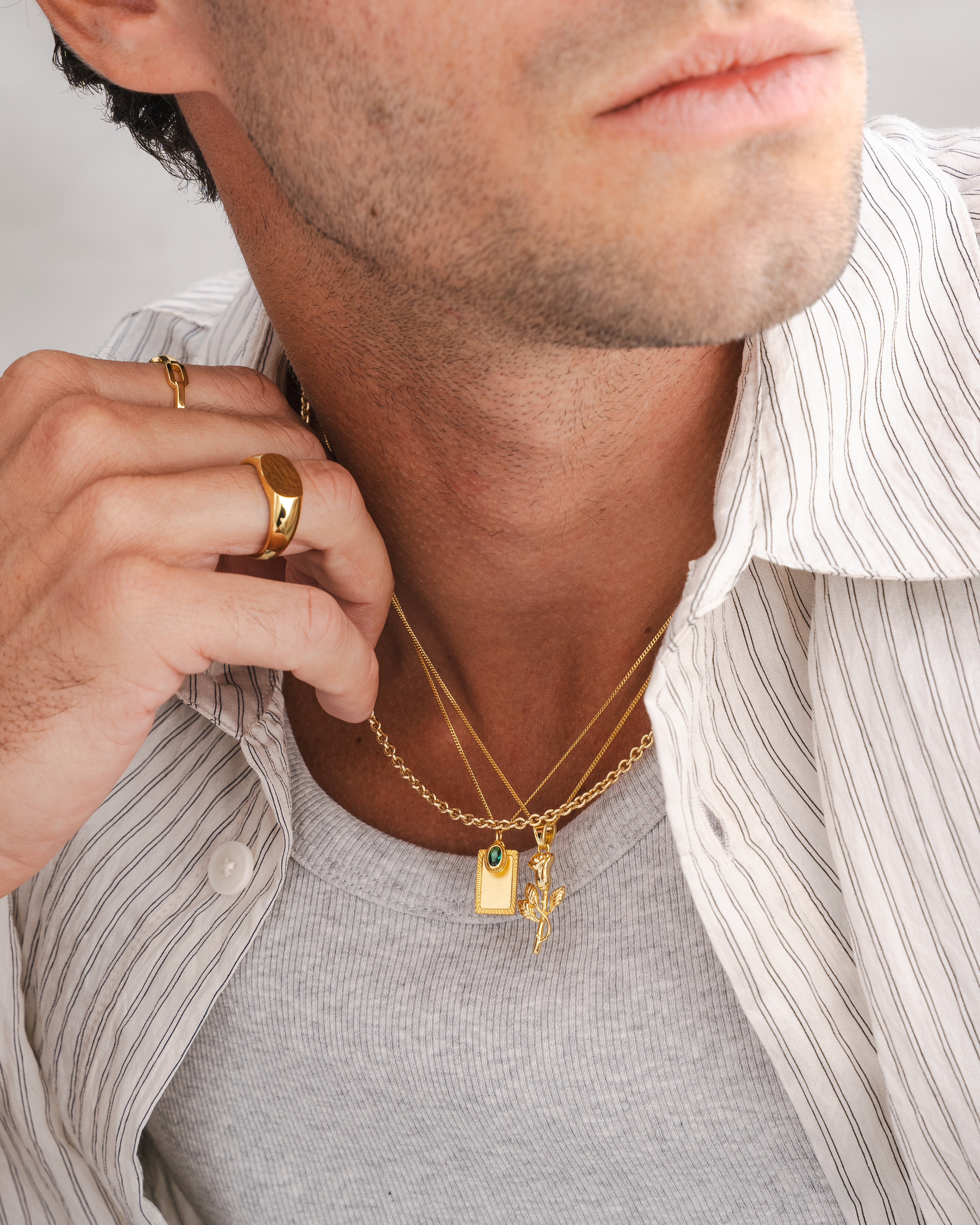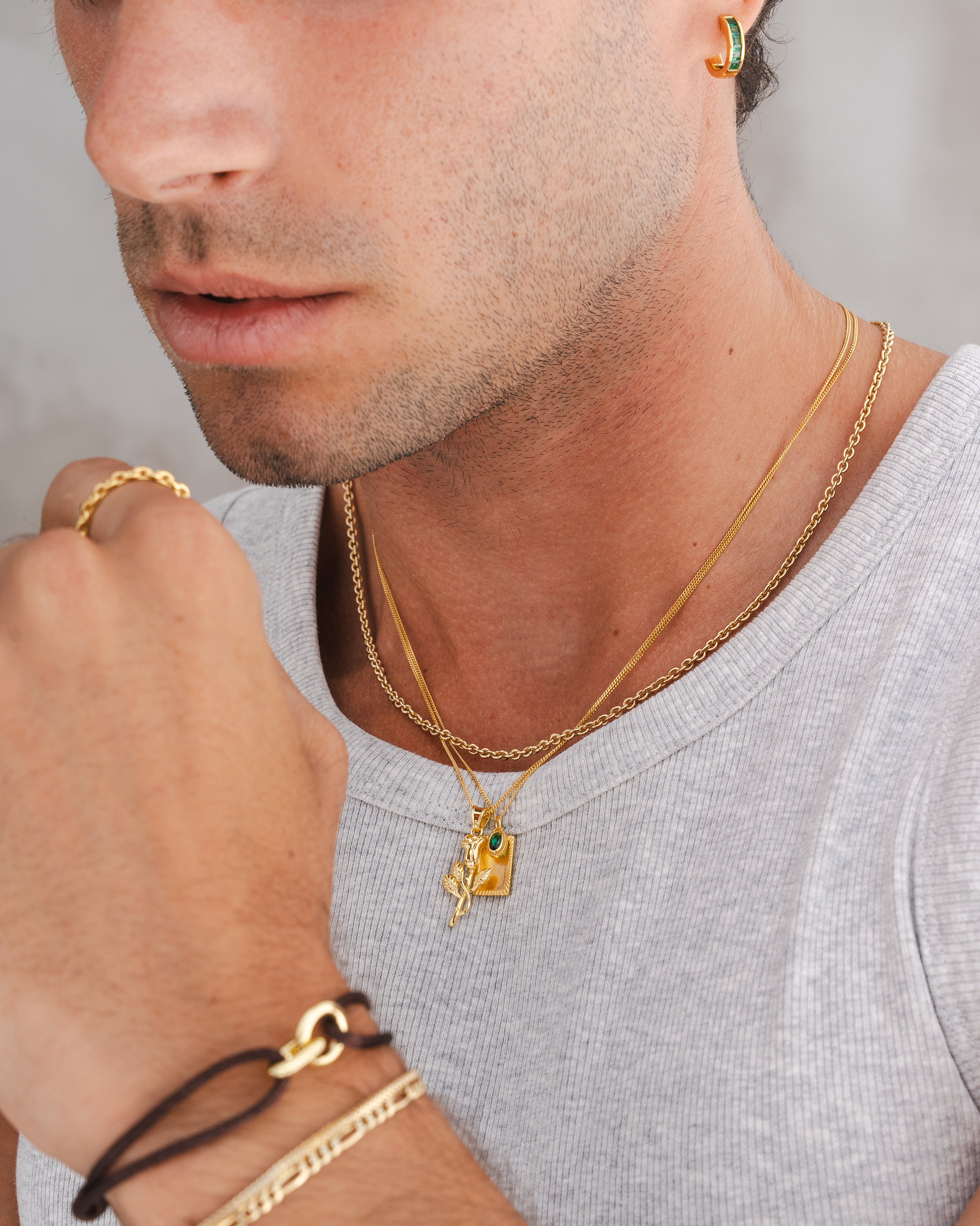 Lifestyle imagery for commonlines. We shot a mixture of ecom images against a white background as well as lifestyle imagery, where we layered up the products to make the jewellery stand out on the model.