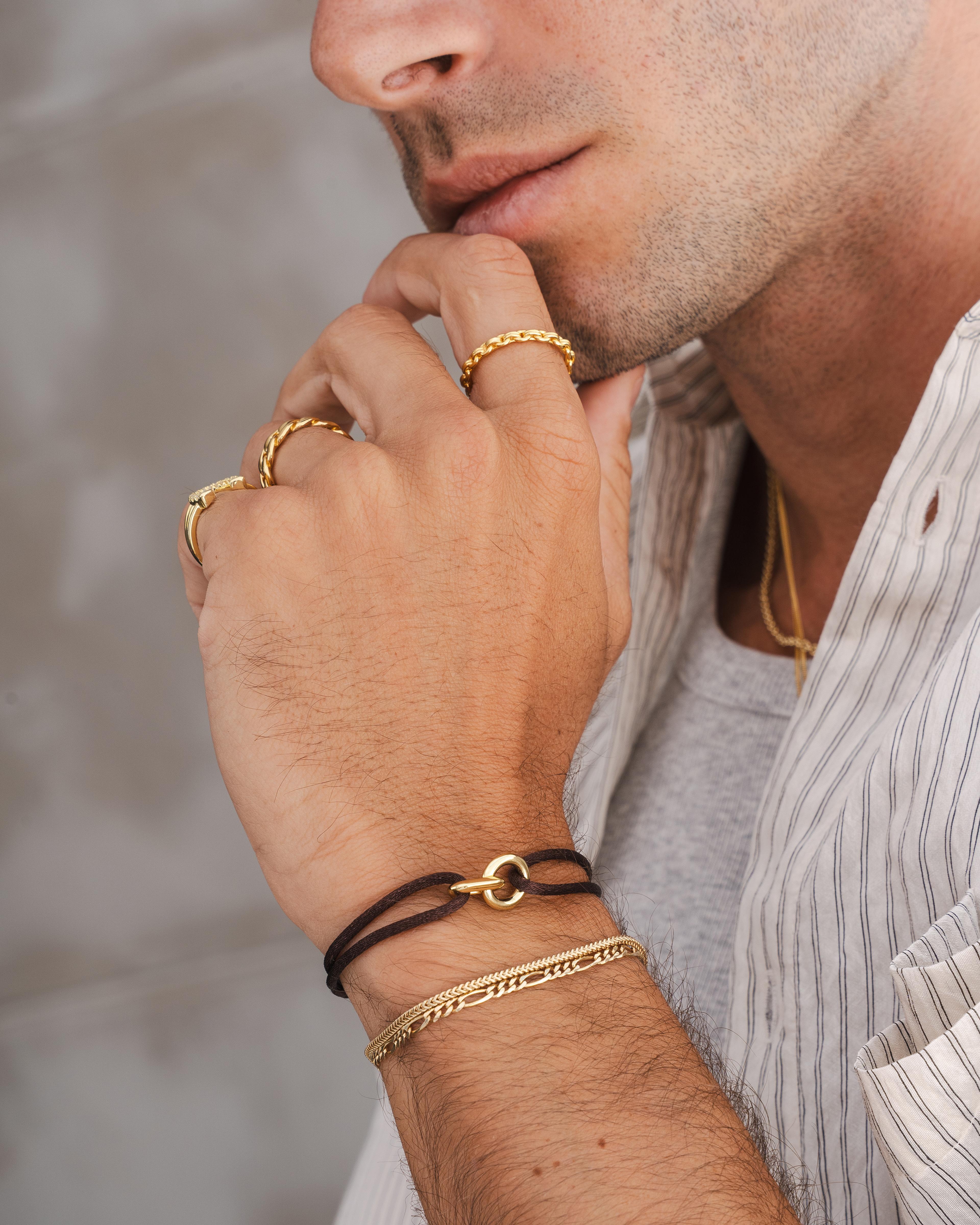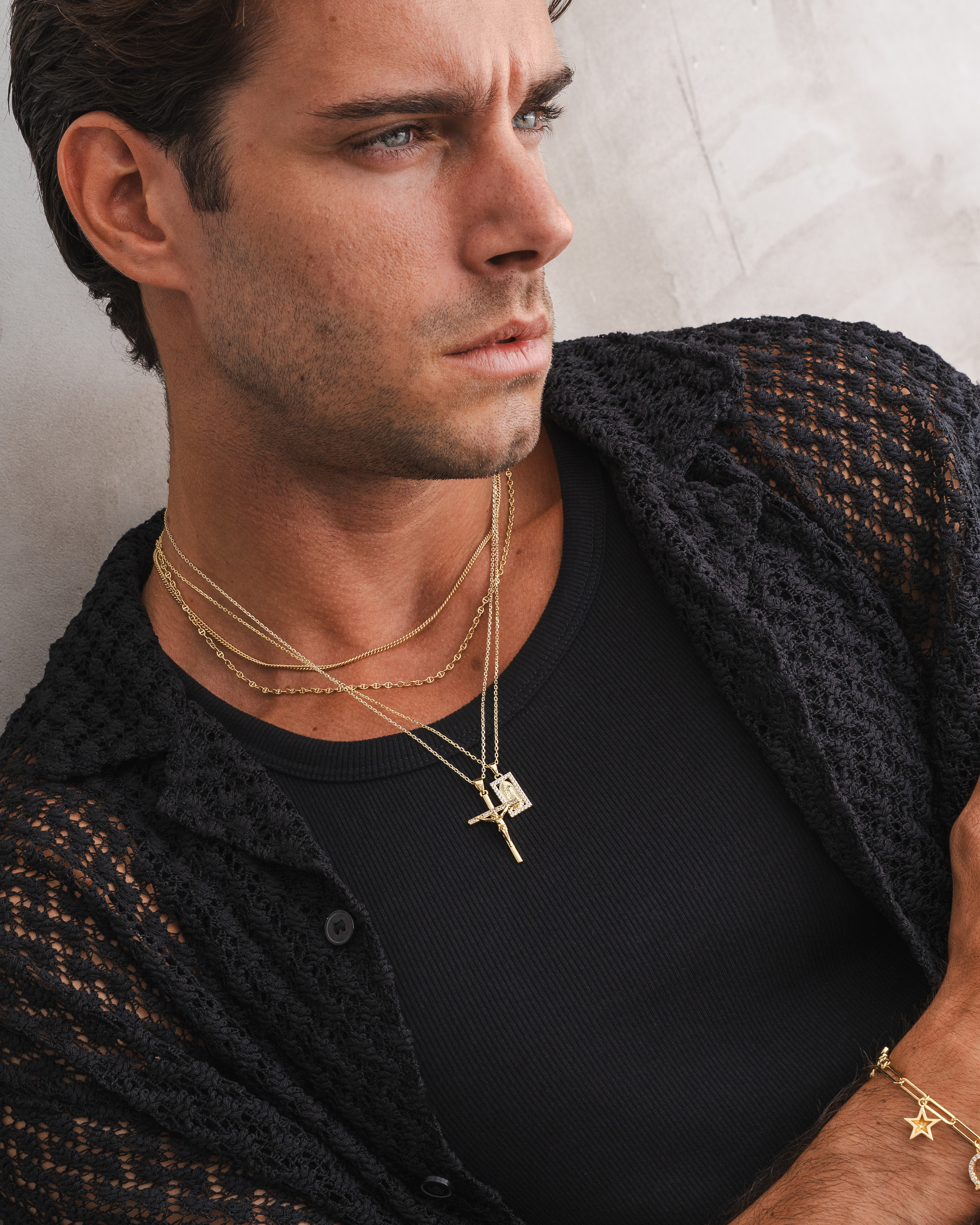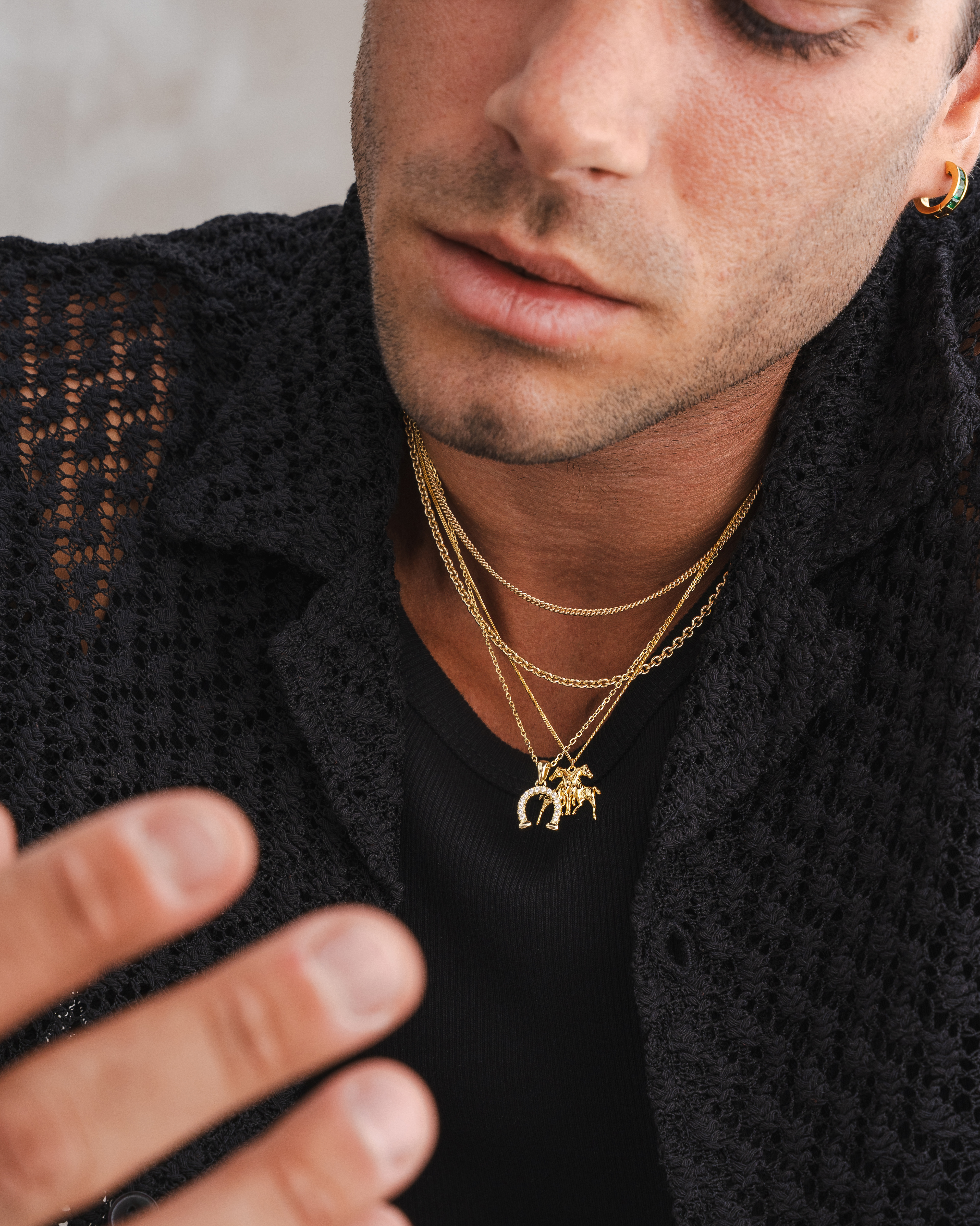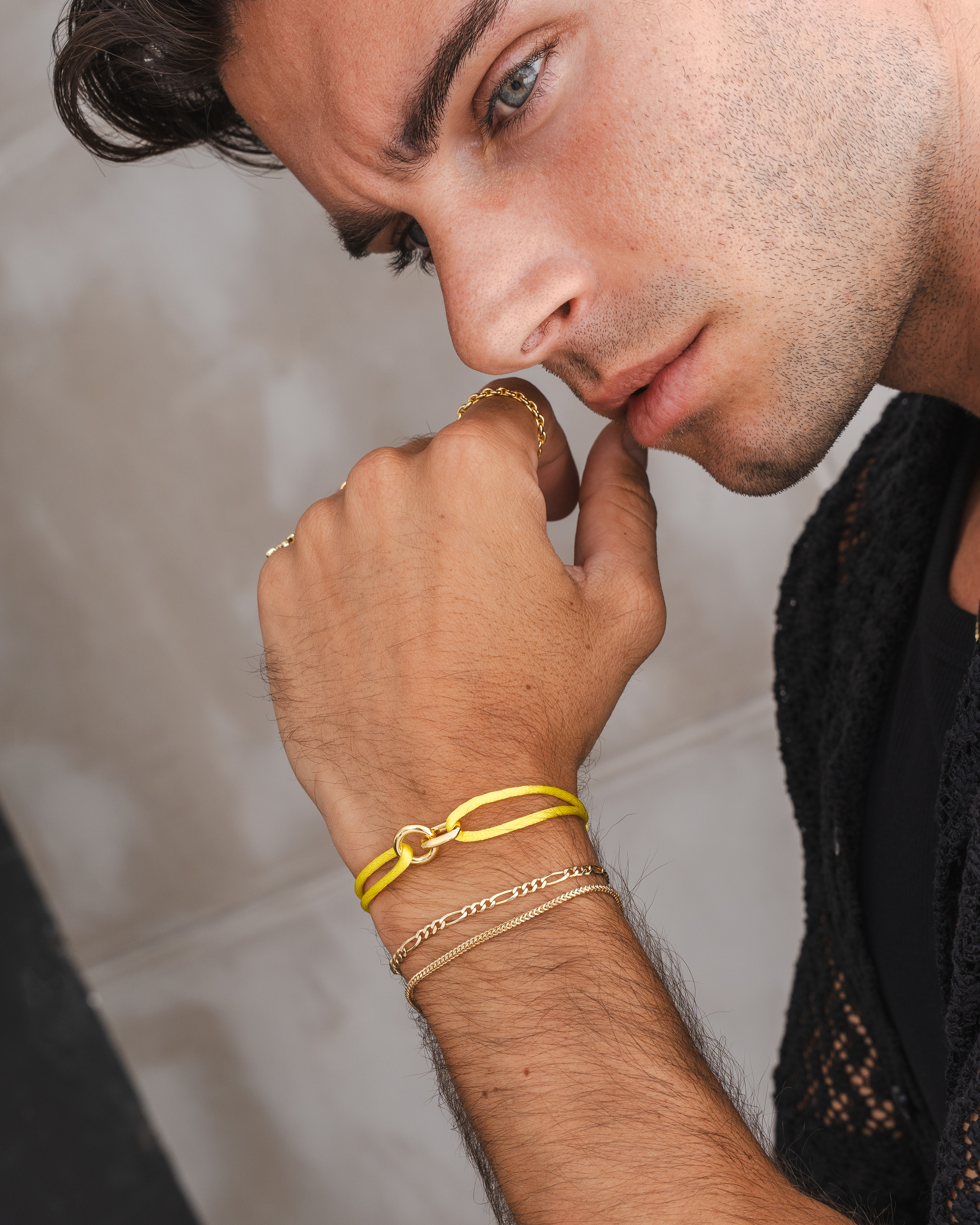 Lifestyle imagery for commonlines. We shot a mixture of ecom images against a white background as well as lifestyle imagery, where we layered up the products to make the jewellery stand out on the model.