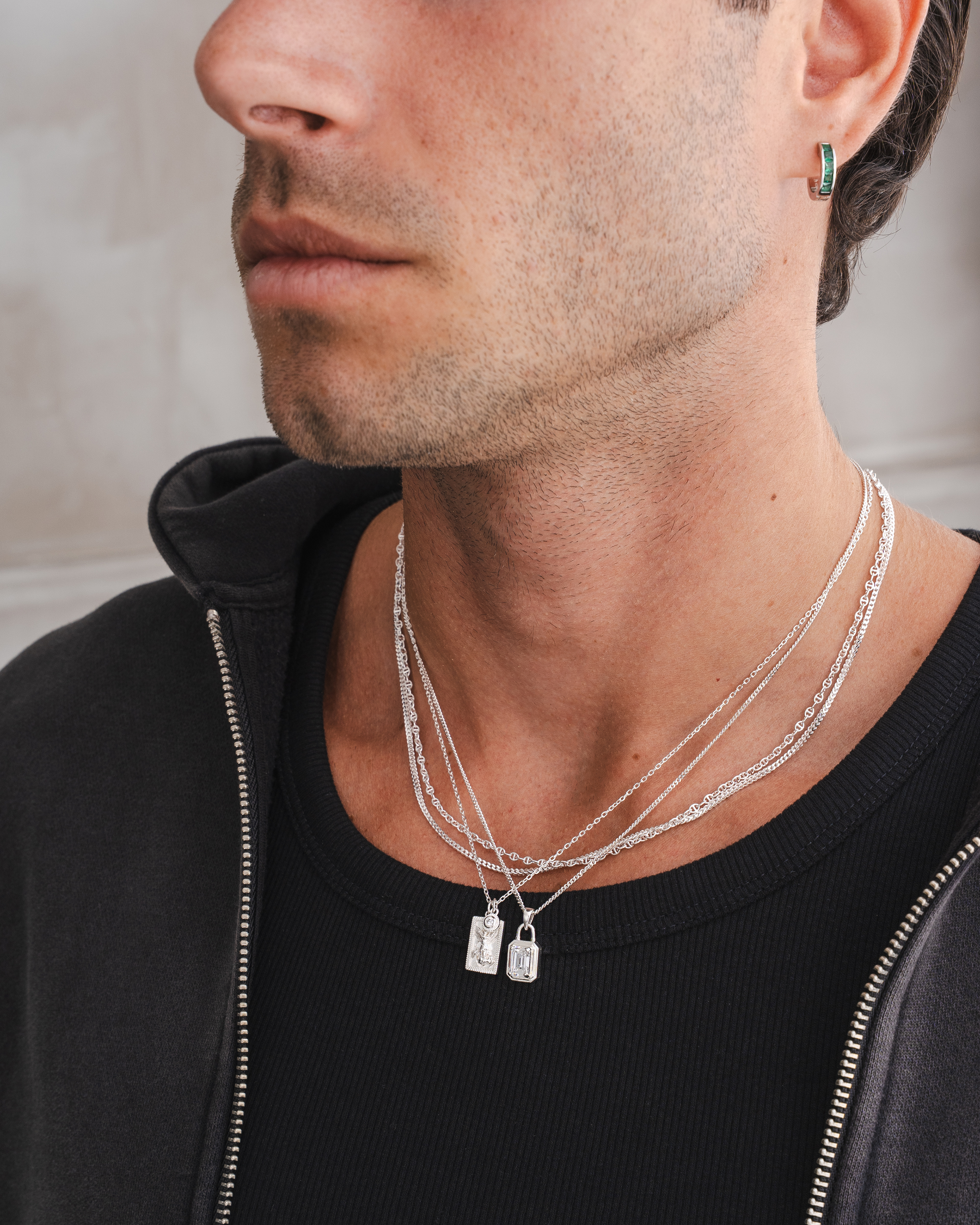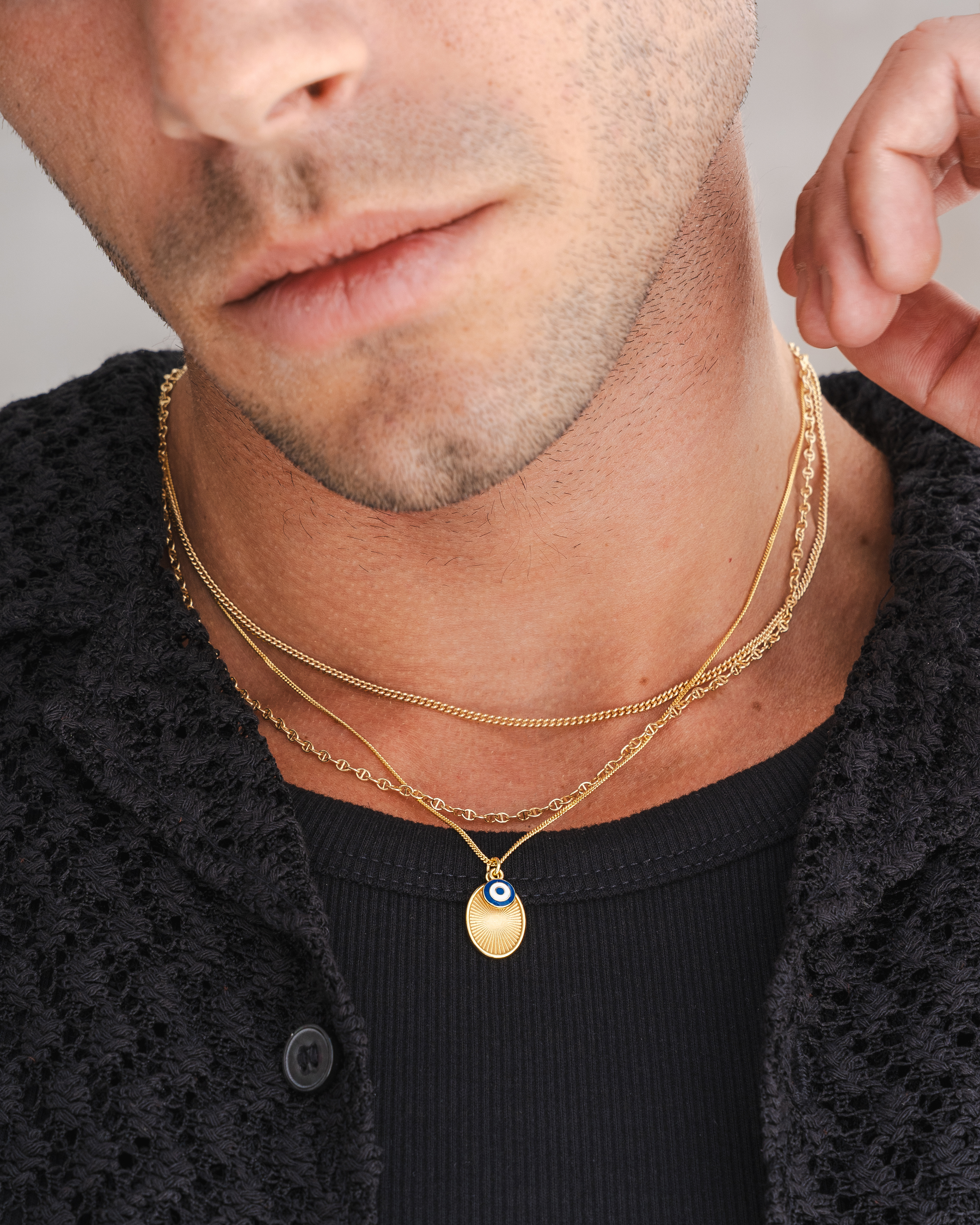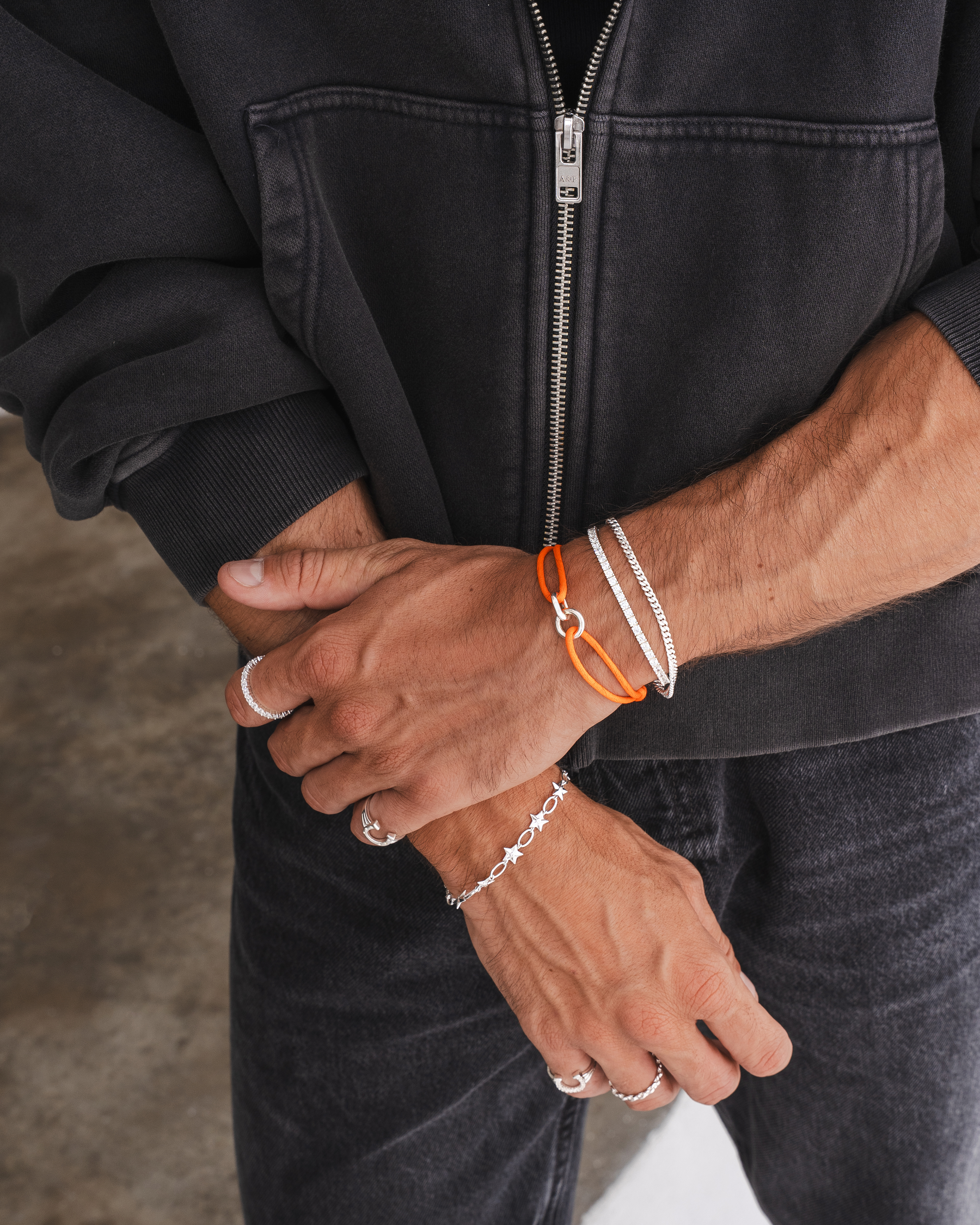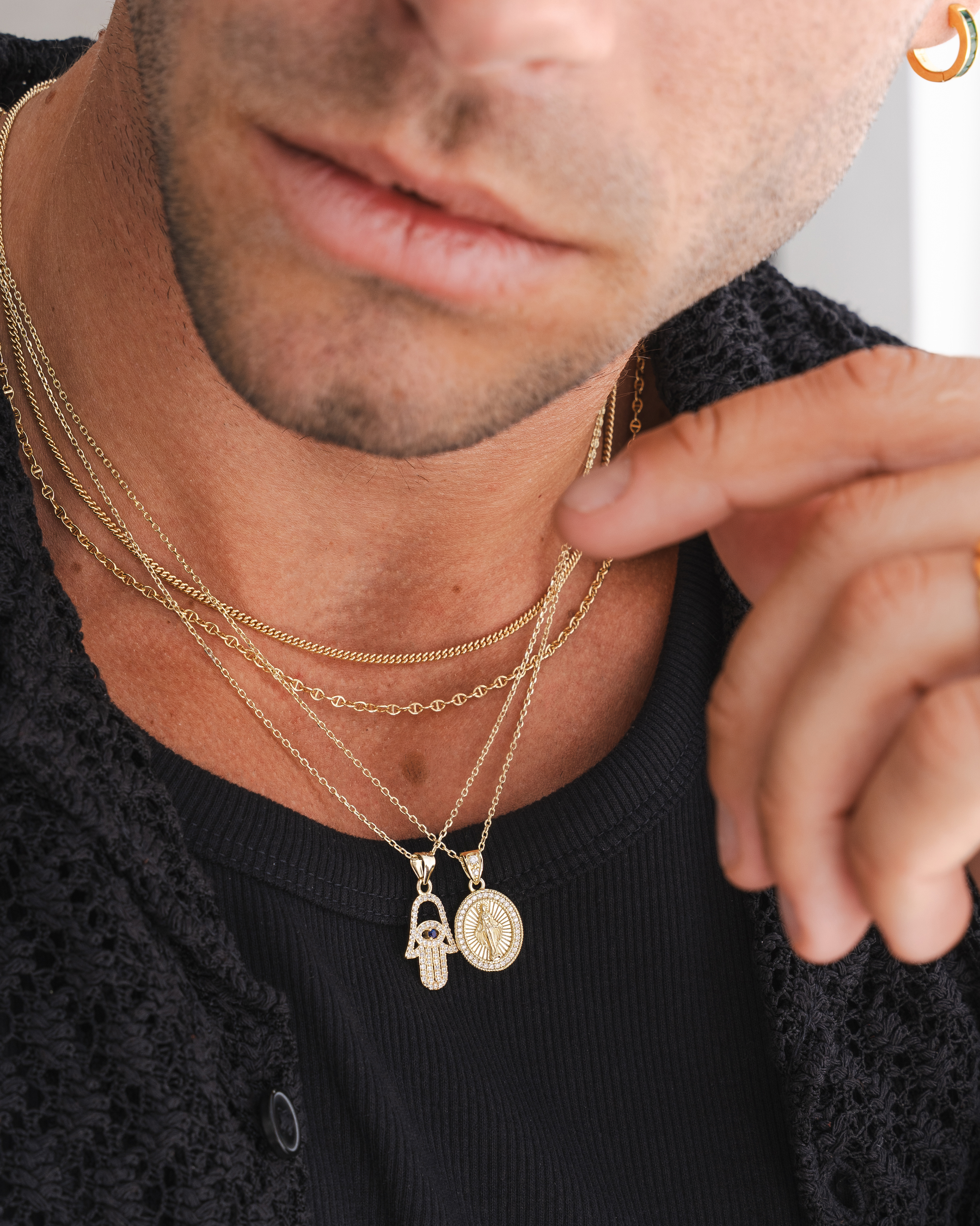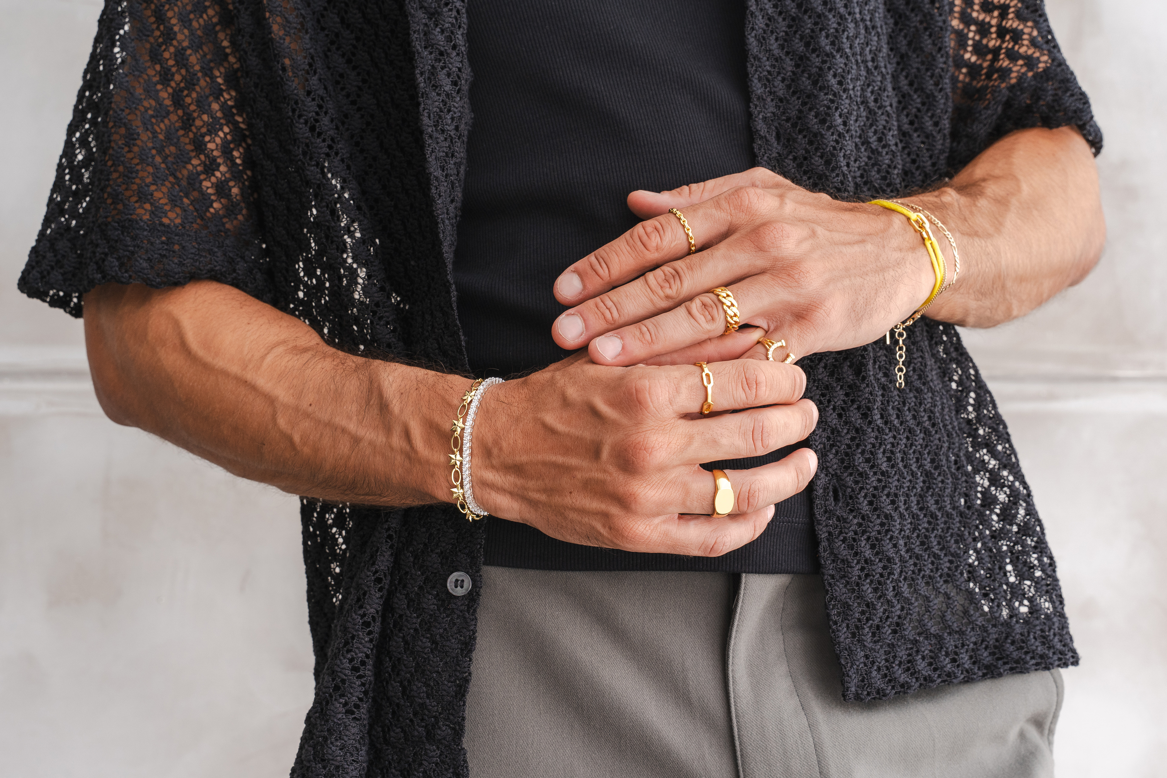 Lifestyle imagery for commonlines. We shot a mixture of ecom images against a white background as well as lifestyle imagery, where we layered up the products to make the jewellery stand out on the model.