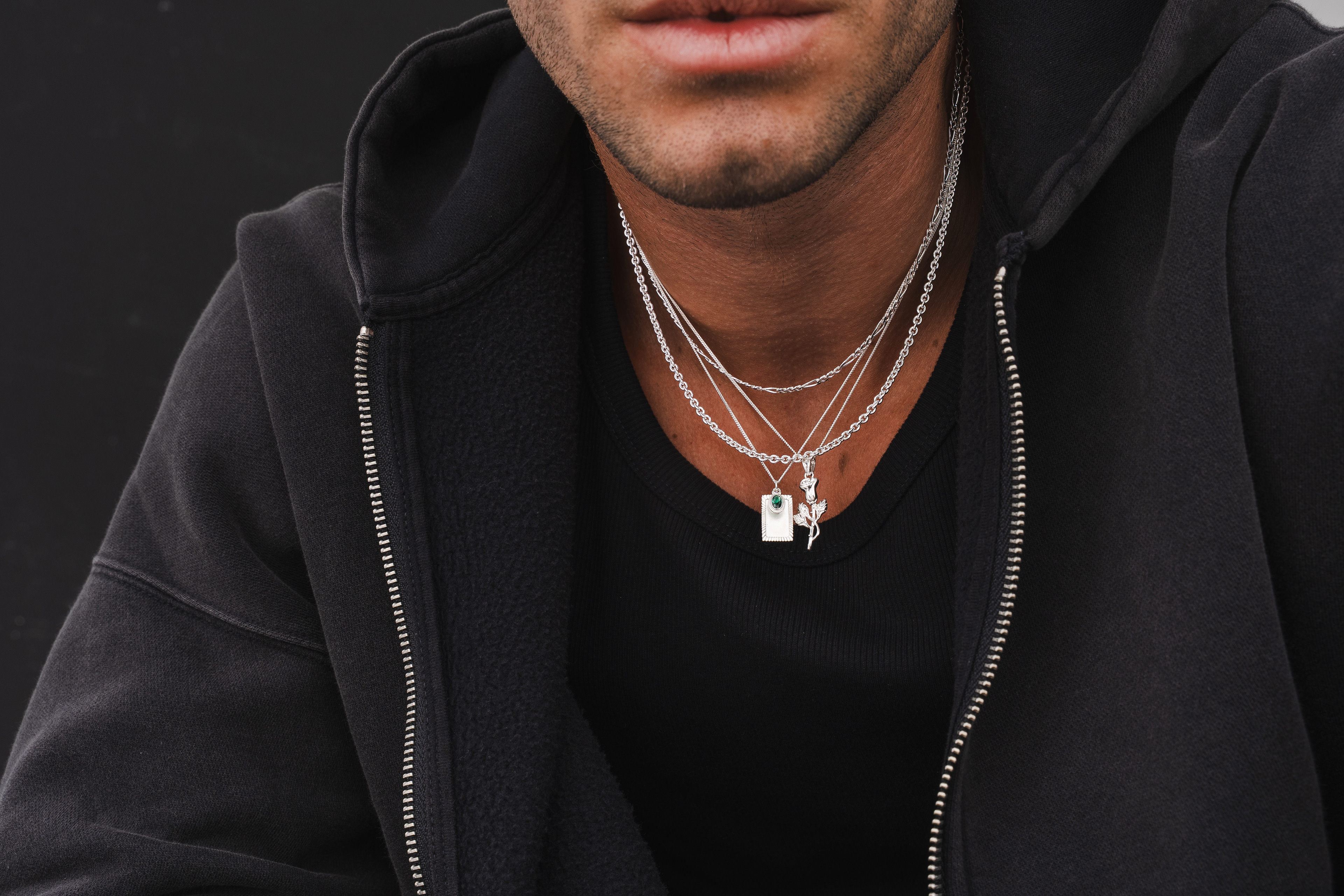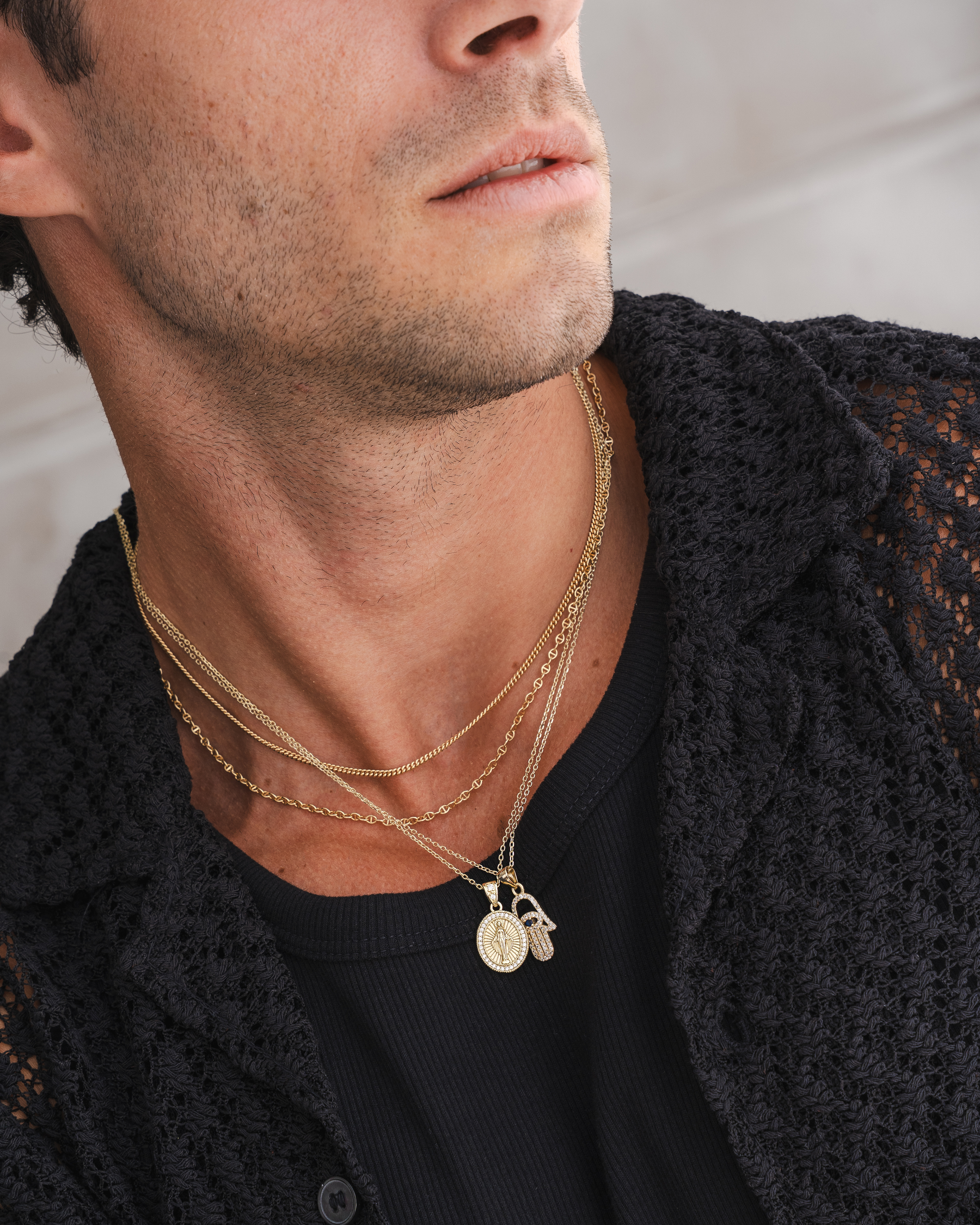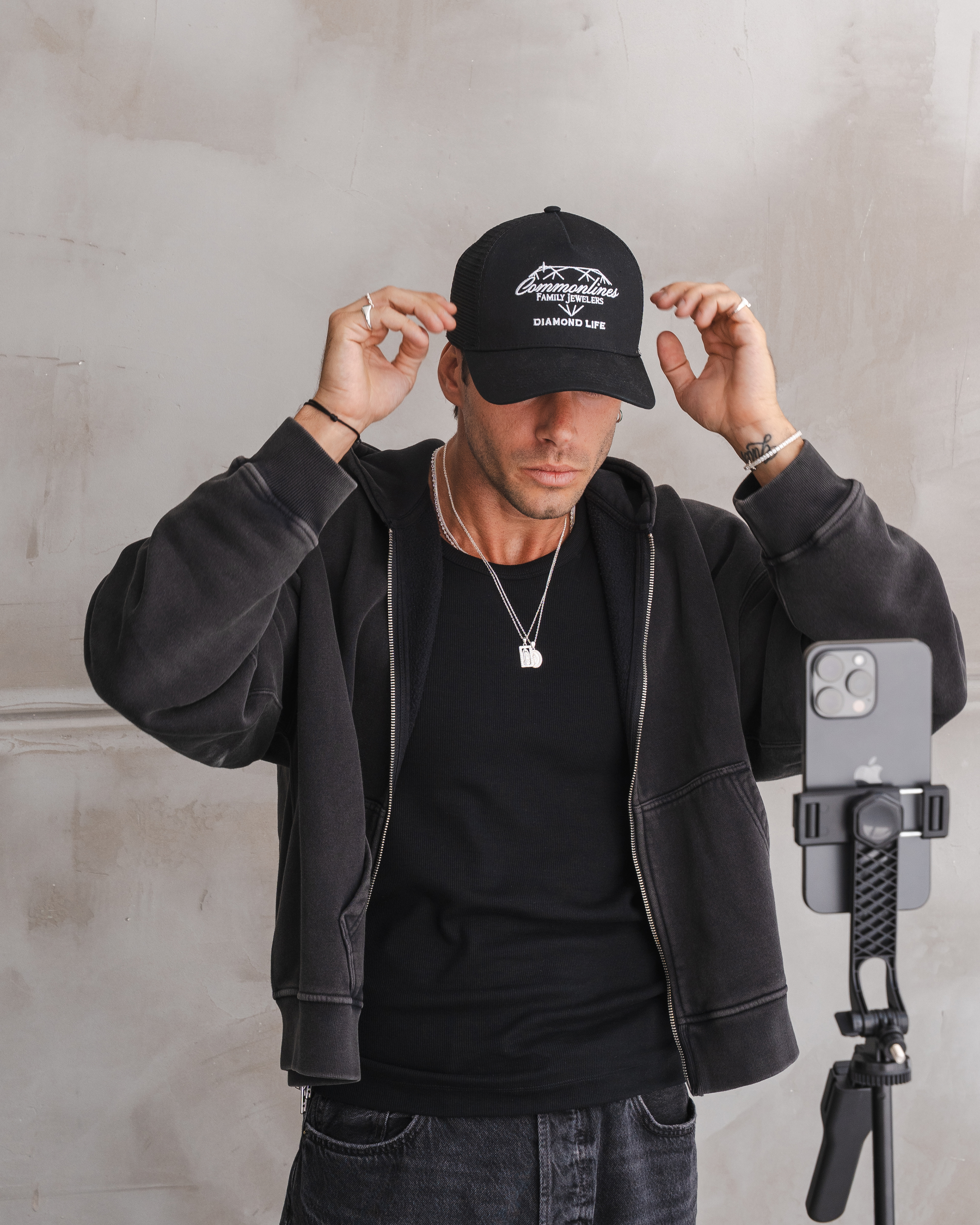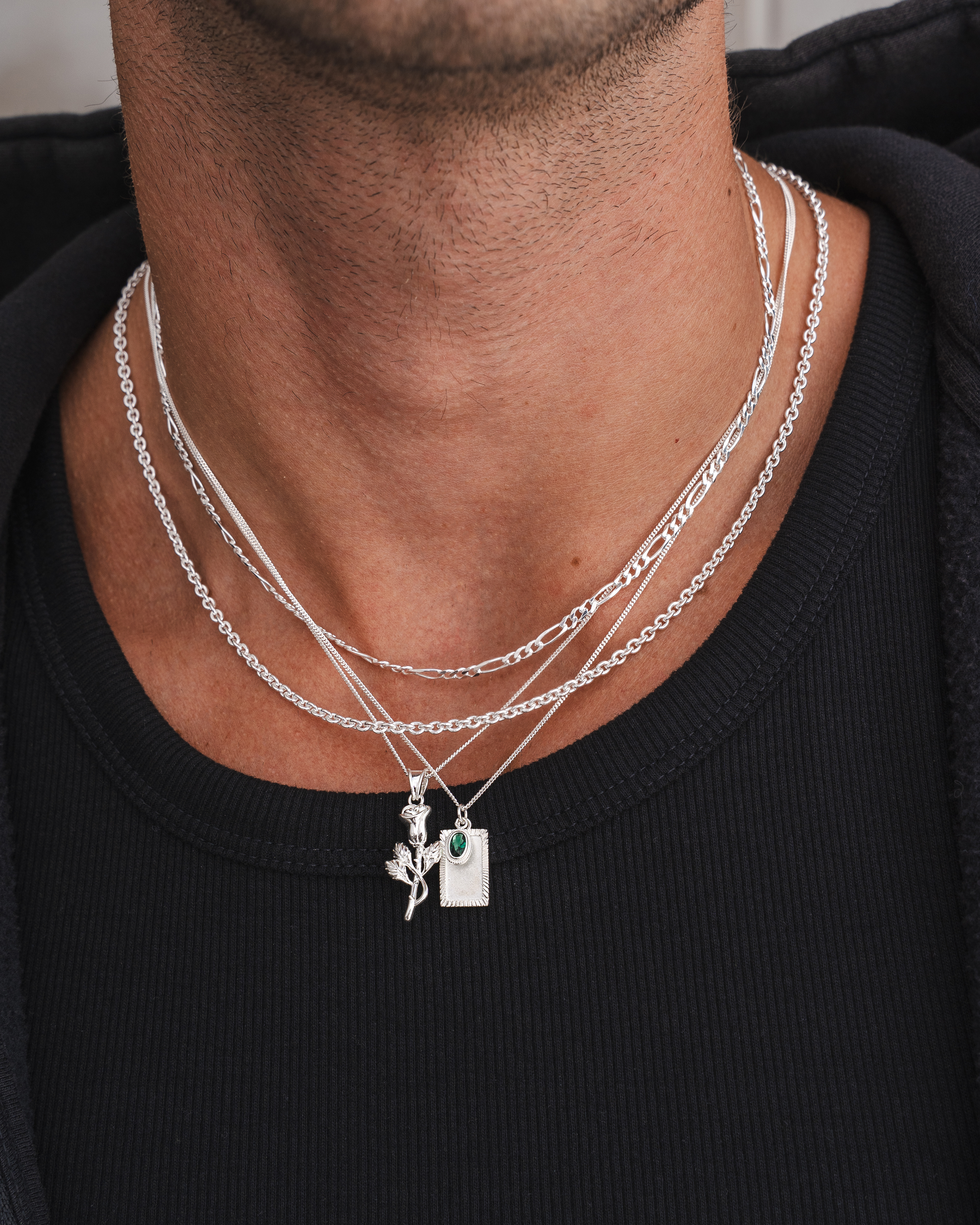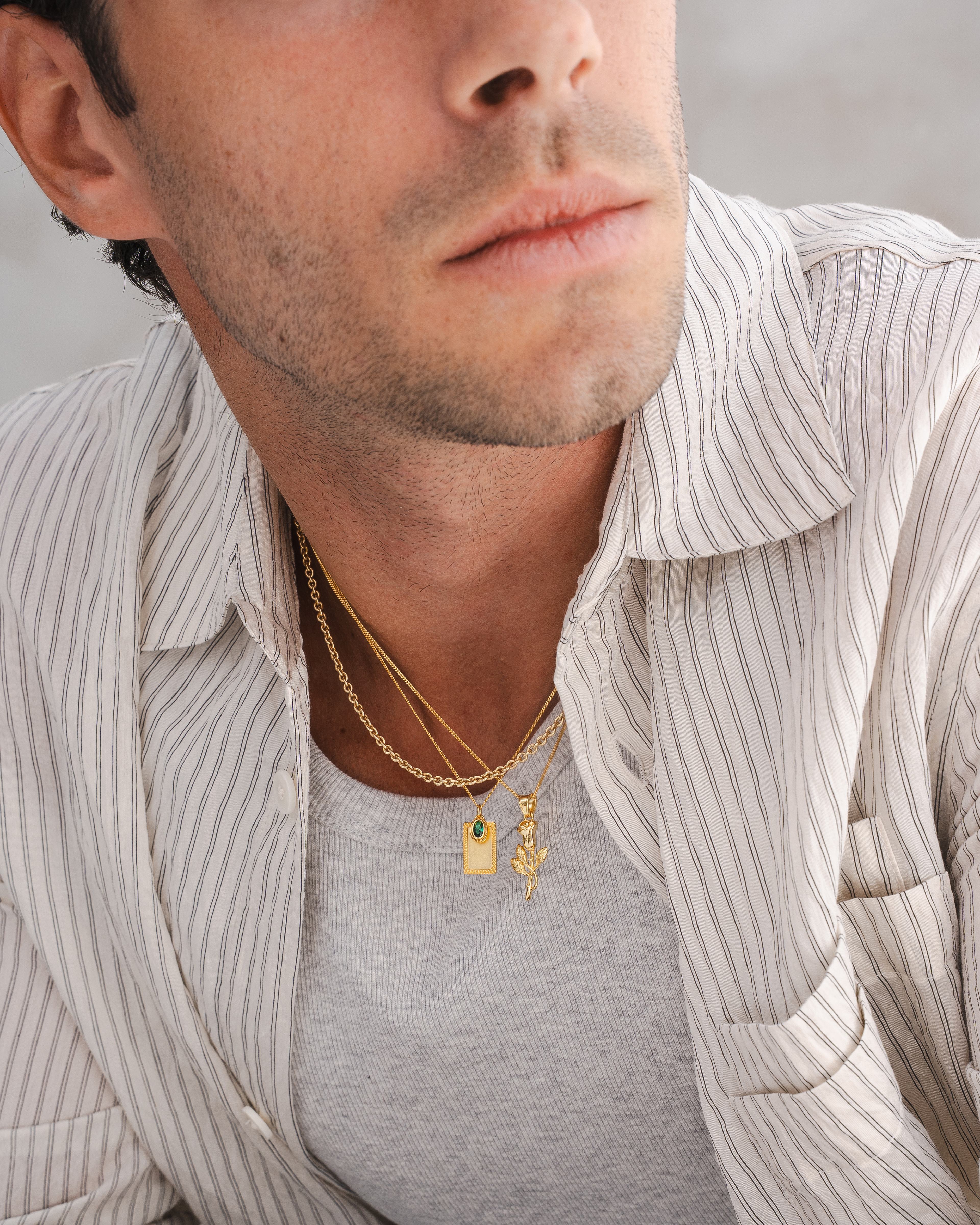 Lifestyle imagery for commonlines. We shot a mixture of ecom images against a white background as well as lifestyle imagery, where we layered up the products to make the jewellery stand out on the model.